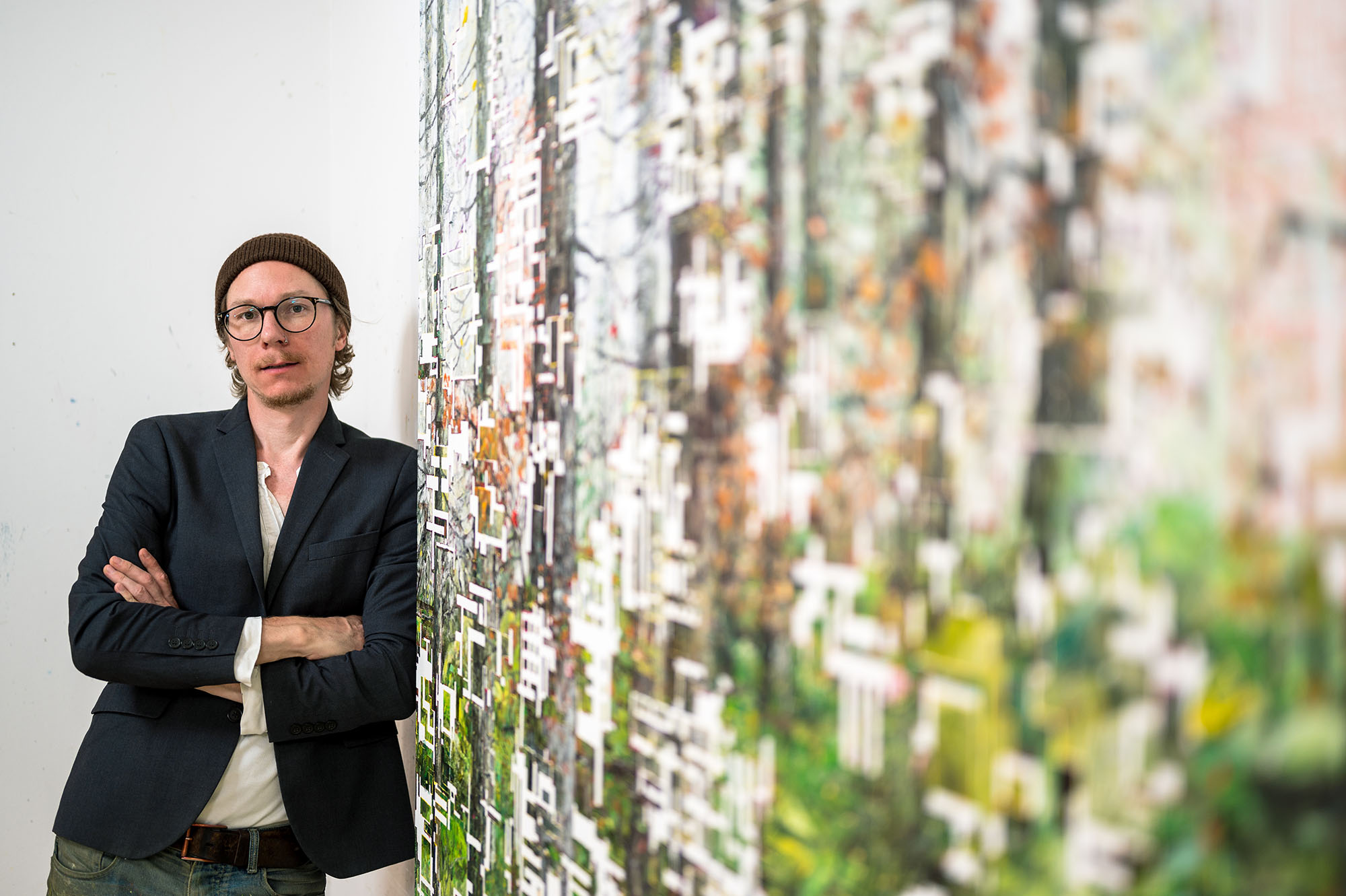 In Jeppe Lauges Malerei herrscht Dualismus. Pastos aufgetragene, geschichtete Ölfarbe formt ein zugleich naturalistisches, als auch ein abstraktes Abbild einer imaginierten Landschaft.