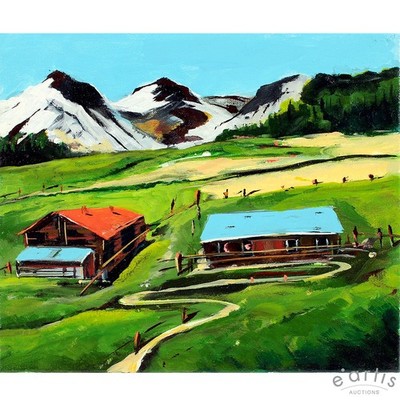 | KARL RÖDEL ORIGINAL GEMÄLDE ABSTRAHIERTE LANDSCHAFT ALPEN HÜTTEN VP: 8500€* | 8 Gebote