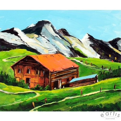 | KARL RÖDEL ORIGINAL GEMÄLDE ABSTRAHIERTE LANDSCHAFT ALPEN HÜTTEN VP: 8500€* | 10 Gebote