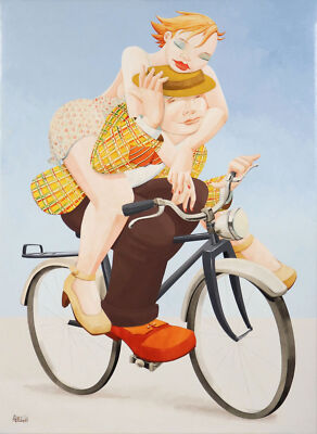 | ANTONIO ABELLAN GEMÄLDE COLLAGE LIEBE PAAR FAHRRAD SPANIEN POP ART VP: 2200€* | 3 Gebote