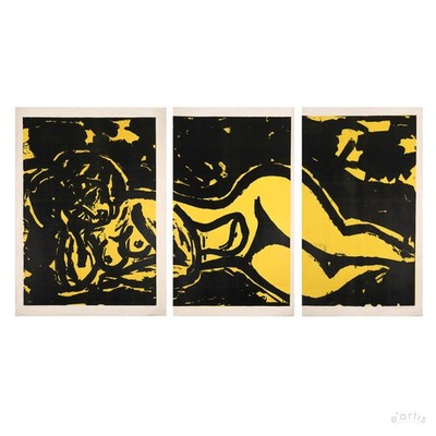 | KARL RÖDEL TRIPTYCHON AKT FRAU LIEGENDE GELB EXPRESSIV 1,7m BREIT VP: 1200€* | 2 Gebote