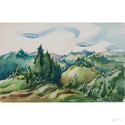 | JOHANNES DINTER AQUARELL BERGGIPFEL GRÜN LANDSCHAFT ERZGEBIRGE ZWICKAU VP: 500€* | 1 Gebote