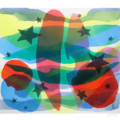 | WILLIBRORD HAAS GRAFIK ABSTRAKT NACHT ROT BLAU GELB SIGNIERT BERLIN VP: 580€* | 5 Gebote
