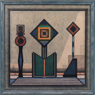 | REINHARD FRITZ GEMÄLDE LEINWAND STAND BY ME FORMEN SCHWEBEN RAHMEN VP: 800€* | 1 Gebote