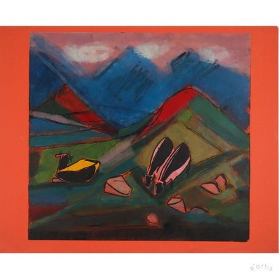 | KARL RÖDEL UNIKAT LANDSCHAFT BERGE KÜHE LITHOGRAFIE POSTWAR VP: 1500€* | 6 Gebote
