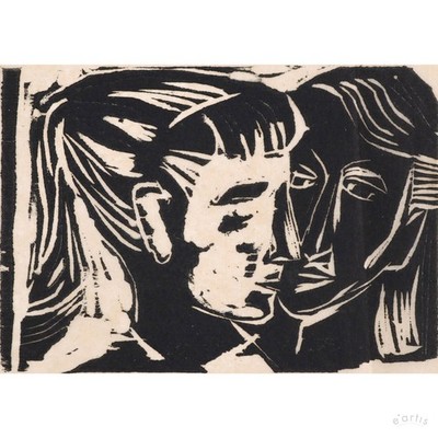 | WALTER WOMACKA GRAFIK MÄDCHENKOPF KIRSCHEN NEUJAHR 1966 SIGNIERT DDR VP: 100€* | 3 Gebote