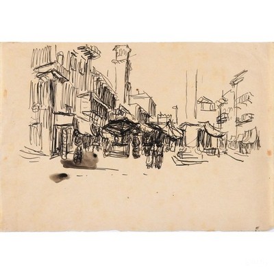 | KARL RÖDEL TUSCHE ZEICHNUNG MENSCHEN STRASSE HÄUSER STADT MARKT UNIKAT VP: 460€* | 0 Gebote