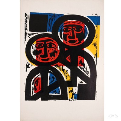 | KARL RÖDEL HOLZSCHNITT GROSS 1967 PAAR SEKTIERER EXPRESSIV MANNHEIM VP: 400€* | 1 Gebote