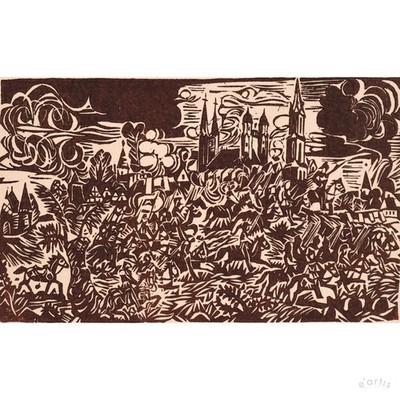 | KARL RÖDEL HOLZSCHNITT REITER TÜRME ALTSTADT HALLE EXPRESSIONISMUS VP: 400€* | 2 Gebote