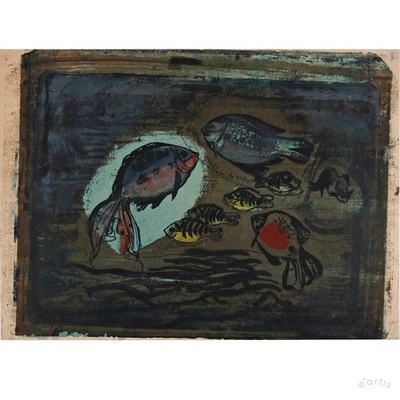 | KARL RÖDEL LITHOGRAFIE BUNTE FISCHE AQUARIUM SIGNIERT HALLE POSTWAR VP: 400€* | 1 Gebote