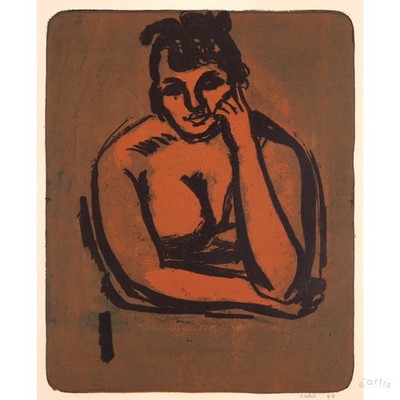 | KARL RÖDEL FARBLITHOGRAFIE FRAU MODELL VORBEUGENDE 1951 HALLE SIGNIERT VP: 400€* | 1 Gebote
