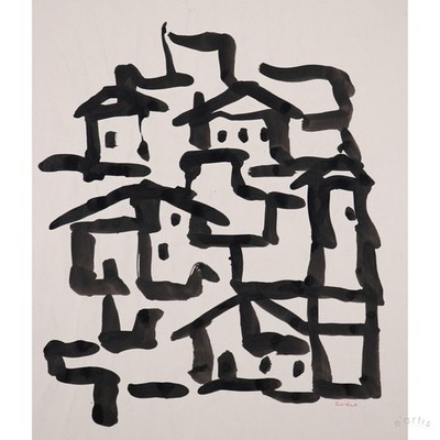 | KARL RÖDEL TUSCHE ZEICHNUNG HÄUSER DORF TOP PROVENIENZ POST WAR UNIKAT VP:1100€* | 2 Gebote
