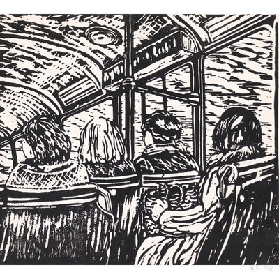 | KÜNSTLERGRAFIK LINOLSCHNITT S/W MENSCHEN IM ZUG BAHNREISE LIMITIERT VP: 100€* | 0 Gebote