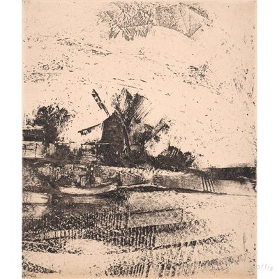 | GUNTER HERRMANN S/W RADIERUNG LANDSCHAFT WINDMÜHLE 1979 DDR SIGNIERT VP: 200€* | 0 Gebote