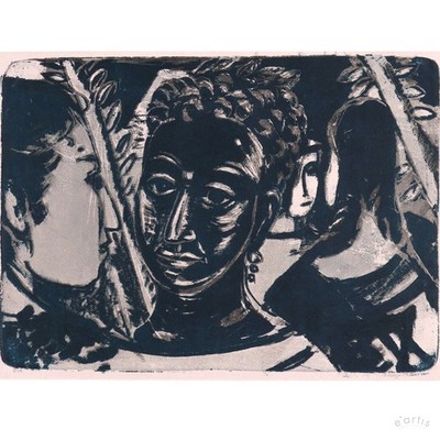 | KARL RÖDEL LITHOGRAFIE BALLETT MASKE TULPE POSTWAR HALLE MANNHEIM VP: 400€* | 3 Gebote