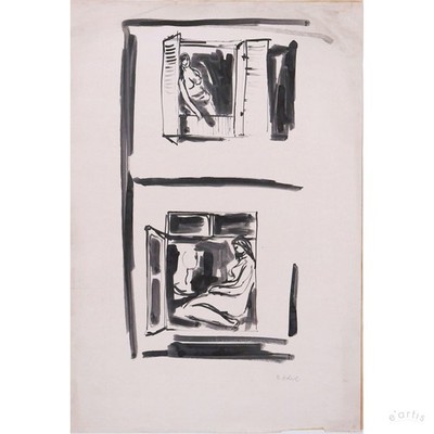 | KARL RÖDEL TUSCHE ZIGEUNERIN FRAU KOPF FEMININ 1959 POSTWAR UNIKAT VP: 1000€* | 0 Gebote