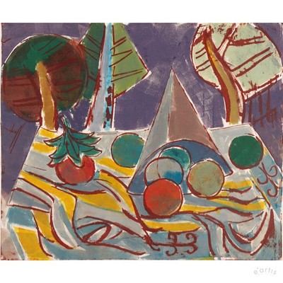 | KARL RÖDEL LITHOGRAFIE STILLLEBEN KUGELN BÄUME 1955 MANNHEIM POSTWAR VP: 400€* | 1 Gebote