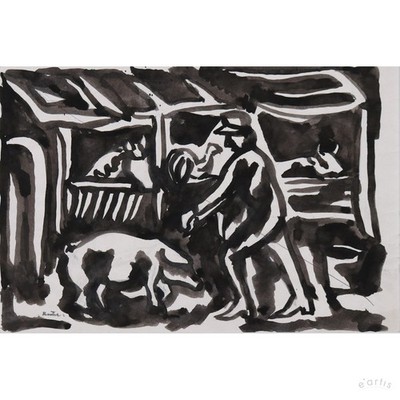 | KARL RÖDEL TUSCHEMALEREI BAUER IM STALL TIERE HALLE WÖRMLITZ SIGNIERT VP: 600€* | 0 Gebote