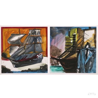 | LAMBERT MARIA WINTERSBERGER 2x GOUACHE HARBOUR SKYLINE SEGELSCHIFF VP: 5500€* | 2 Gebote