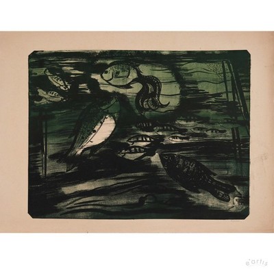 | KARL RÖDEL GRAFIK FISCHE AQUARIUM SIGNIERT HALLE POST WAR NACHLASS VP: 400€* | 1 Gebote