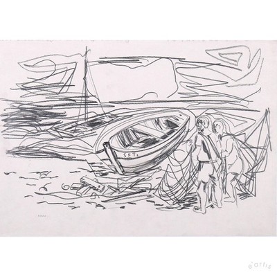 | KARL RÖDEL ZEICHNUNG FISCHER MEER KÜSTE BOOTE UNIKAT HALLE POSTWAR VP: 1000€* | 1 Gebote