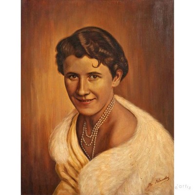| ÖLMALEREI GEMÄLDE PORTRÄT FRAU DAME PERLENKETTE PELZ RAHMEN UNIKAT VP: 500€* | 1 Gebote