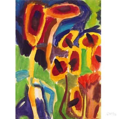 | WILLIBRORD HAAS GRAFIK ABSTRAKT SÄULEN ROT GRÜN GELB SIGNIERT BERLIN VP: 580€* | 2 Gebote
